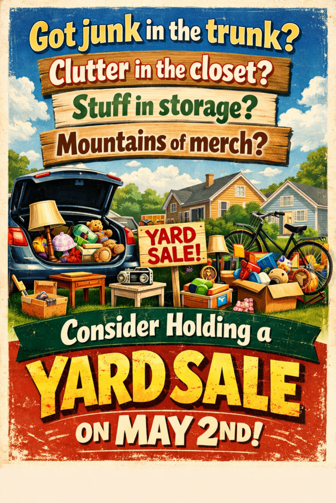 The STCL Community Yard sale is a longstanding and fun tradition. One date, multiple participating homes generating lots of interest and traffic. If you’ve been thinking of cleaning out the attic, or the garage, or you’ve been holding onto items to give away, here’s your chance to de-clutter and freshen things up for Spring.